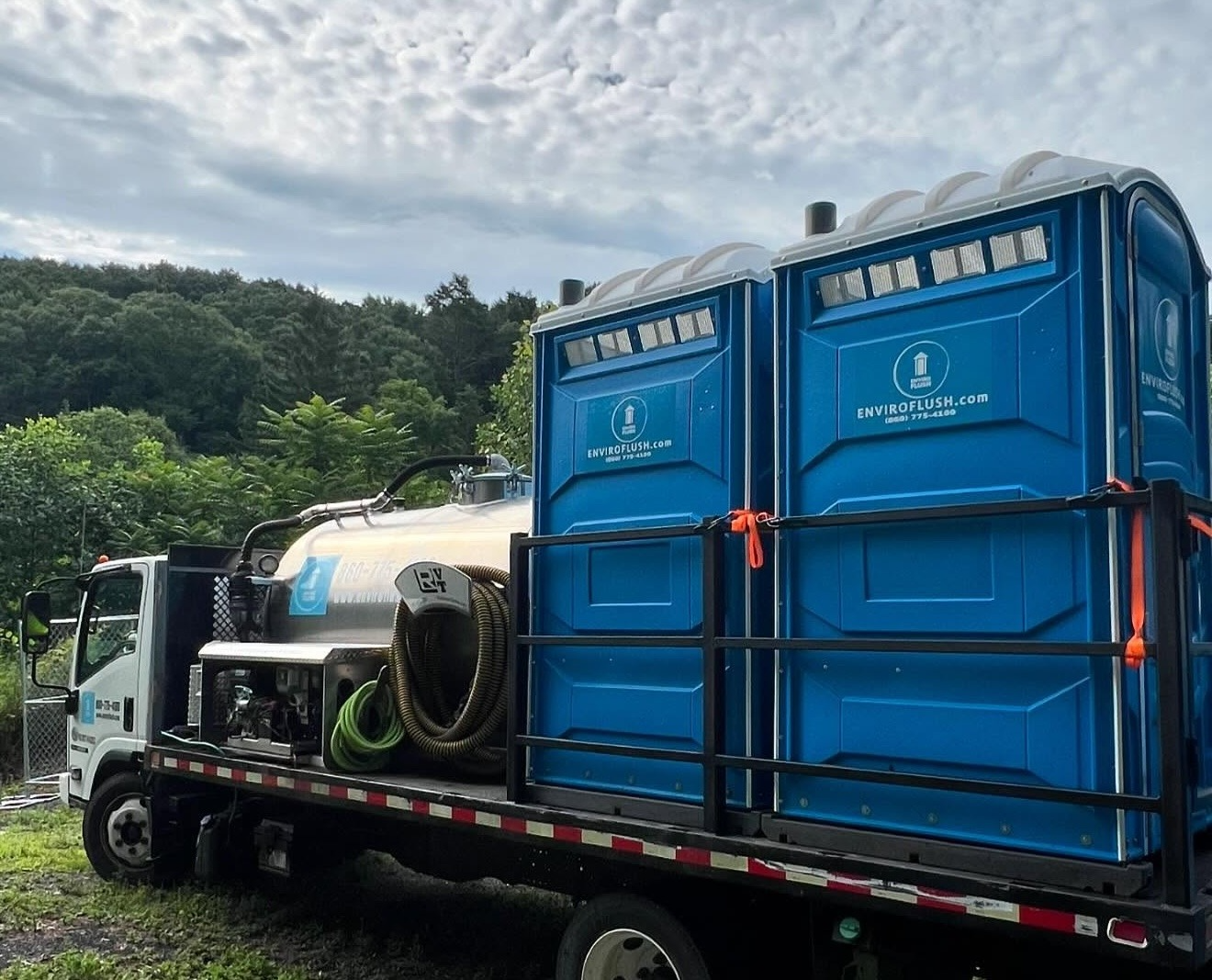Upgrade your outdoor event with our flushable portable toilets. Featuring fresh-water flushing, built-in sinks, and solar lighting, these luxury units are ideal for upscale functions like weddings and VIP gatherings.